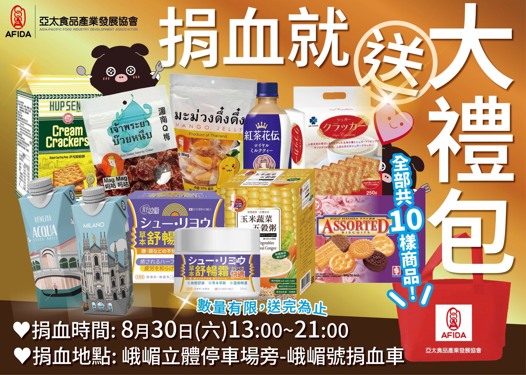 台灣血庫近期告急!根據2025年3月統計,國內血液庫存平均僅剩6.6天,尤其A型與O型血最為短缺。面對血荒,亞太食品產業發展協會攜手捐血中心,將於 8月30日(六) 在 西門町峨嵋停車場旁捐血車 舉辦募血活動,並由協會志工現場協助,號召年輕朋友捲起衣袖,捐出熱血。凡當日捐血250cc,即可獲得限量大禮包,數量有限,送完為止!